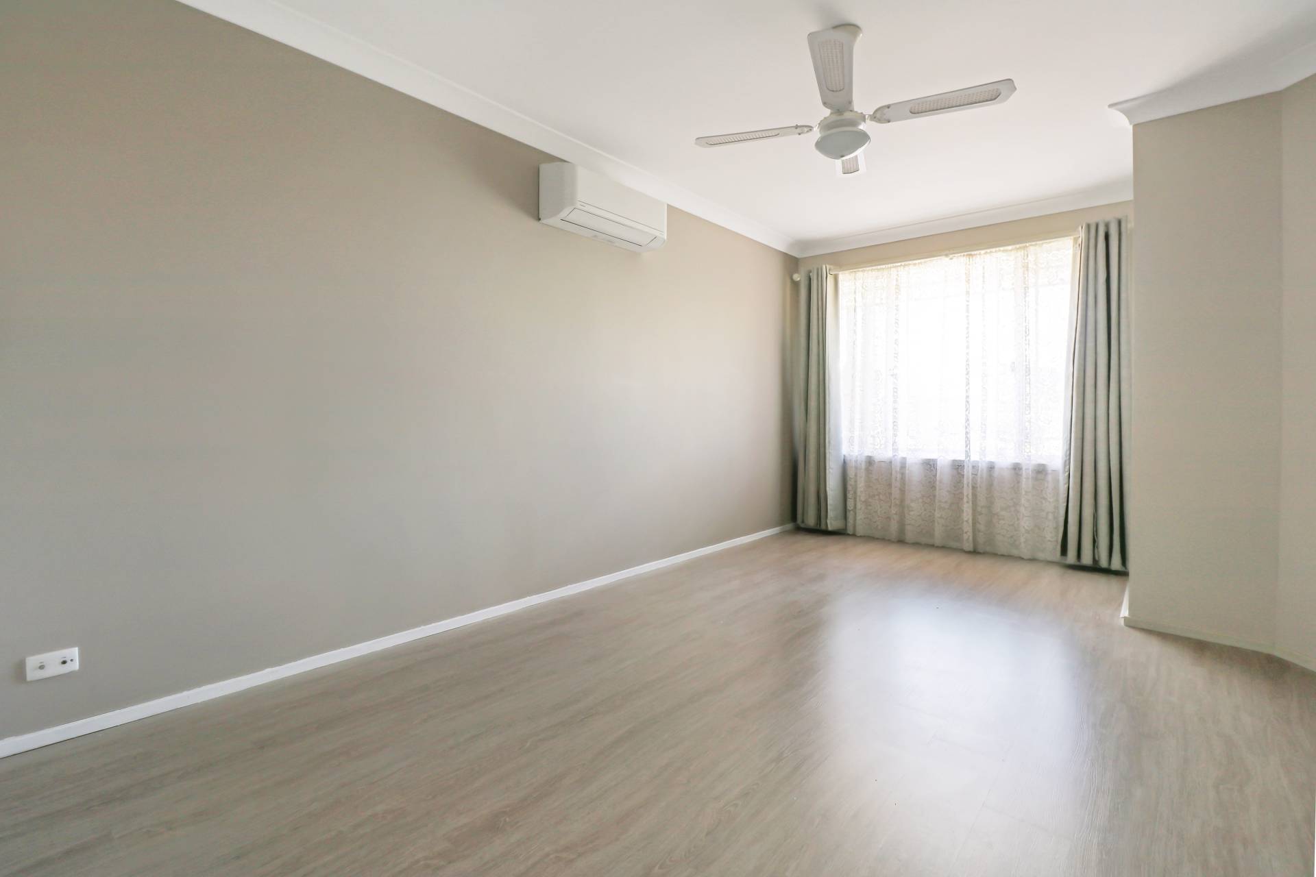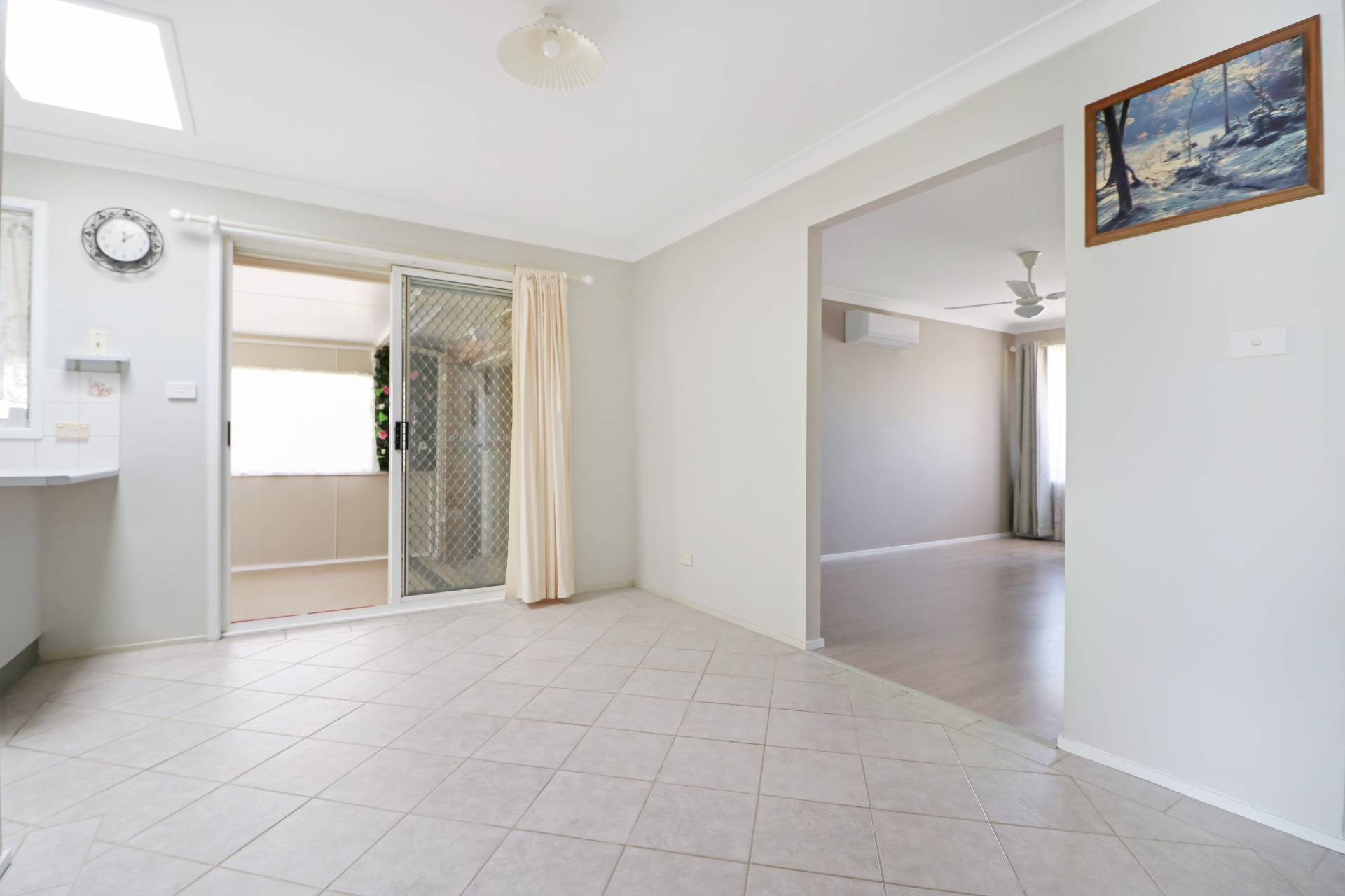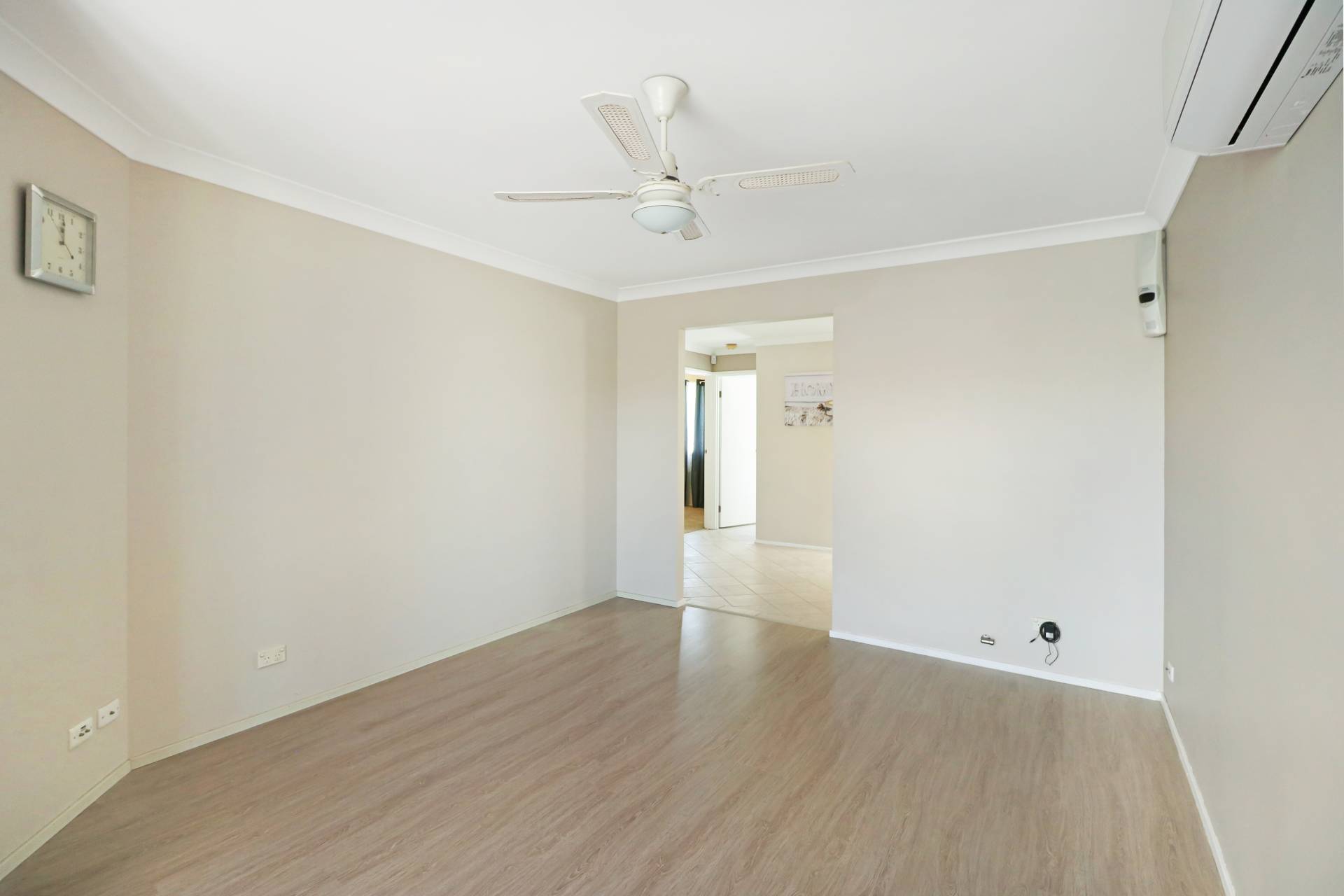 Stepping inside you’ll discover a simple layout with air-conditioning and ceiling fans throughout.