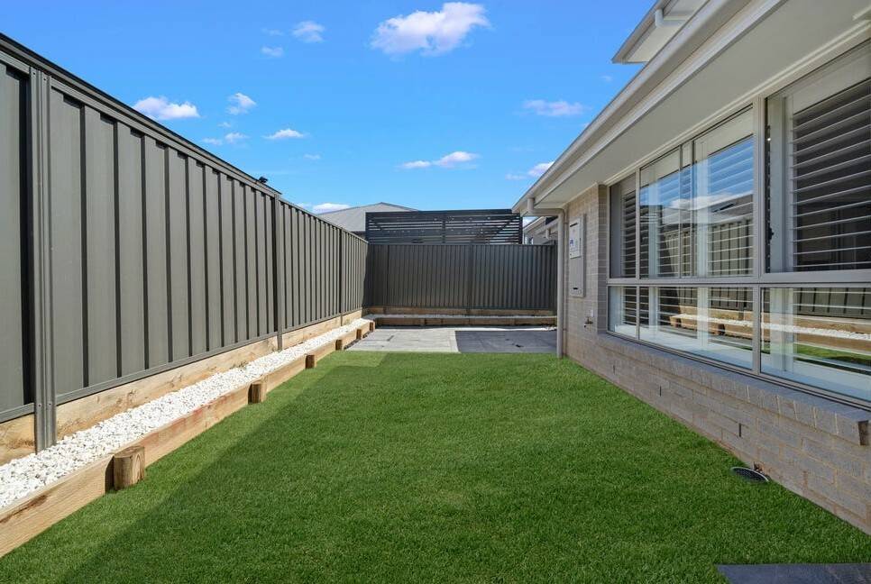Outdoor Oasis: Embrace the ease of a great-sized backyard adorned with easy-to-care-for artificial grass, an ideal setting for outdoor activities and relaxation.