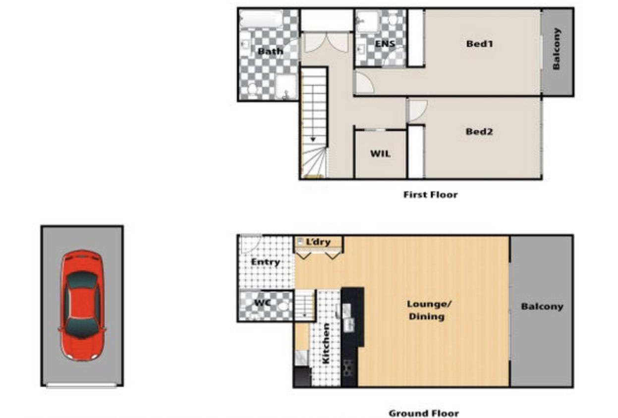 Downstairs, you’ll find a spacious open-plan living and dining area with sleek floorboards, flowing out to your own private balcony. The modern kitchen is well-appointed, and the convenience of a third toilet, internal laundry, and direct access to a single lock-up garage adds to the functionality of the space.