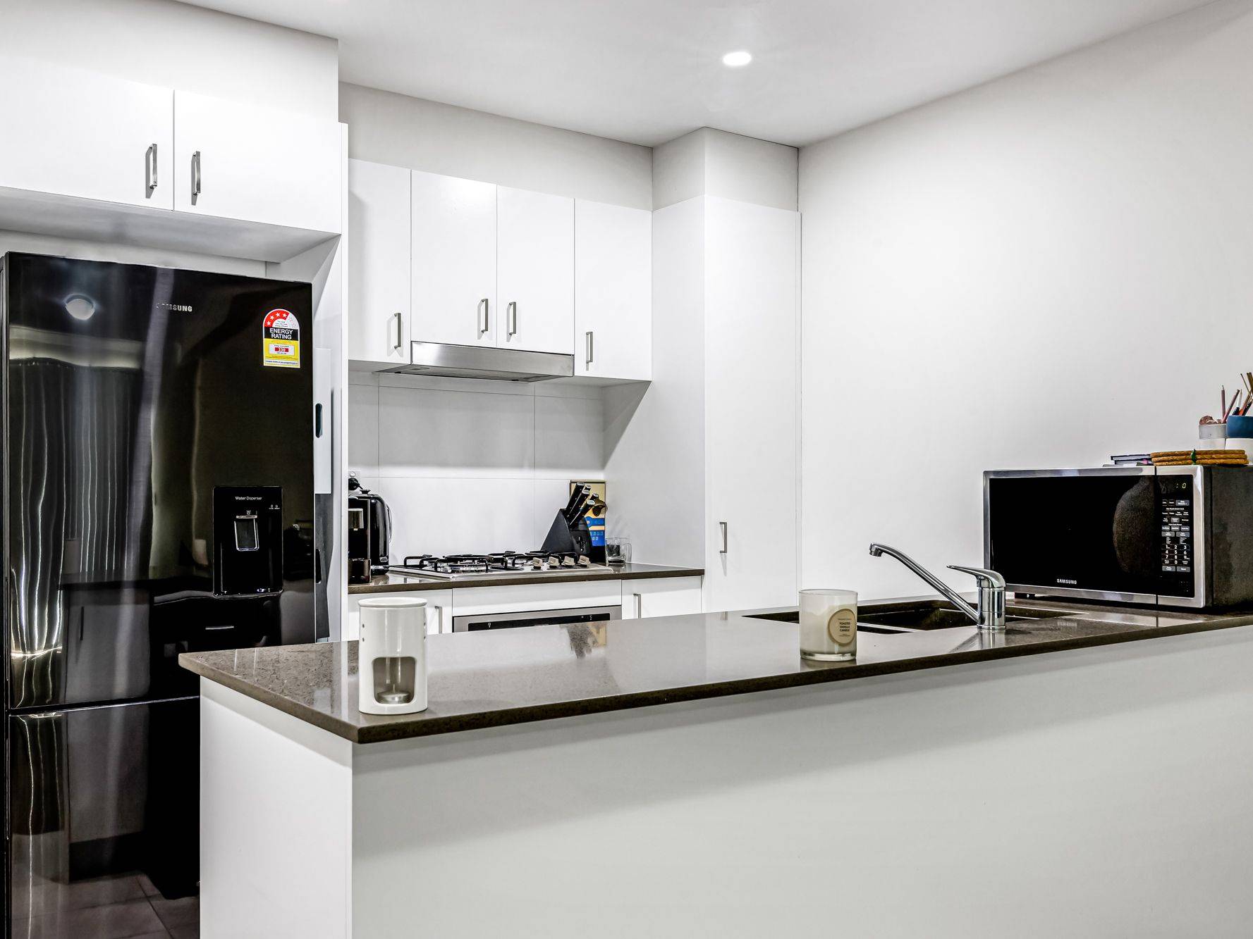 Contemporary fixtures and fittings are on show throughout including the well-equipped kitchen with a suite of stainless steel appliances, a dishwasher, a gas cooktop and ample bench space. Ideal for entertaining, the lounge flows effortlessly out to a balcony along with bedroom two while the master boasts its own balcony for added privacy.