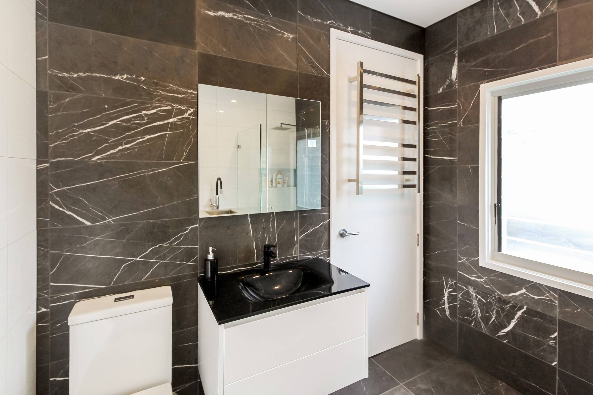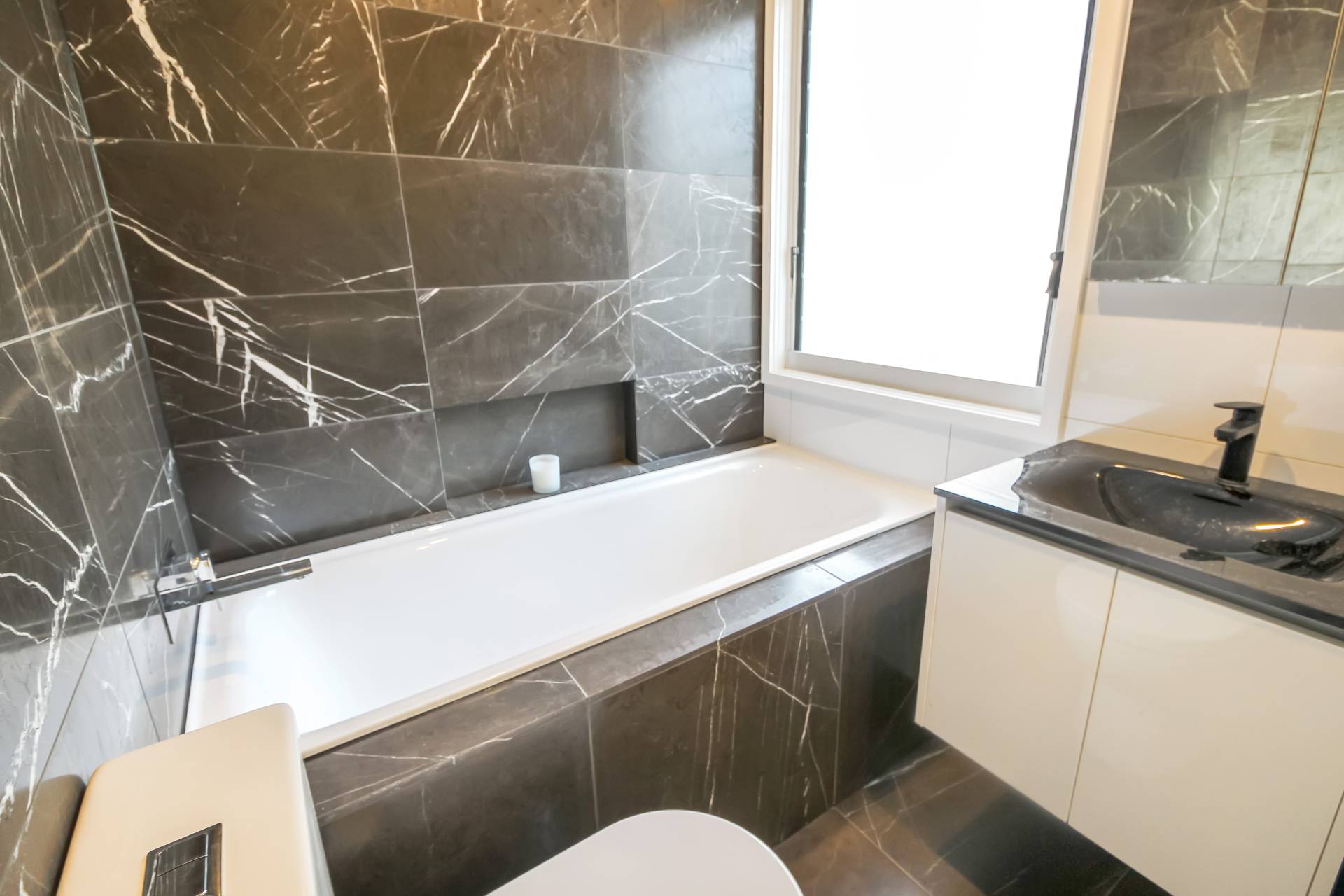 - Modern bathrooms tiled from floor to ceiling